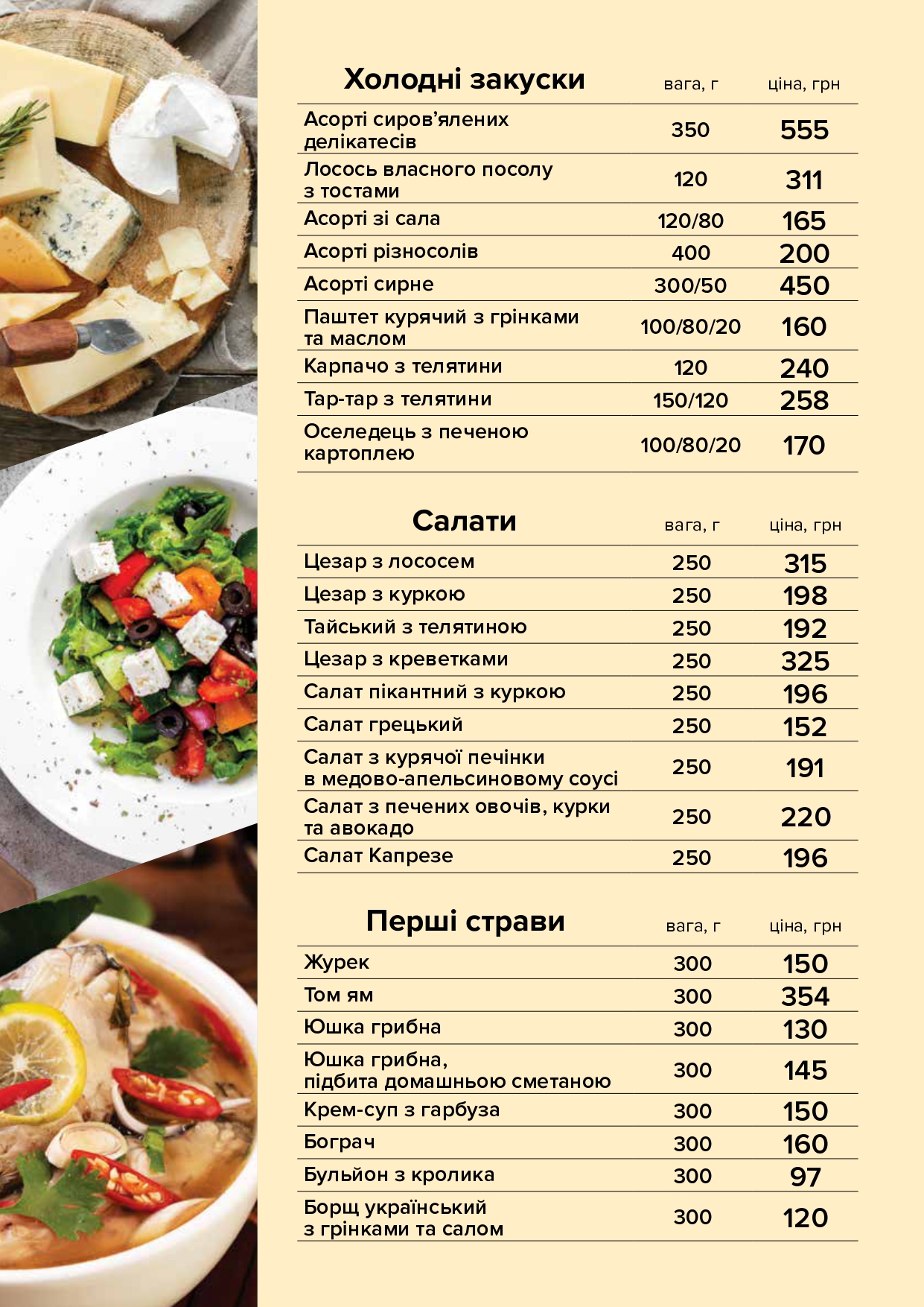 Харчування — Меню